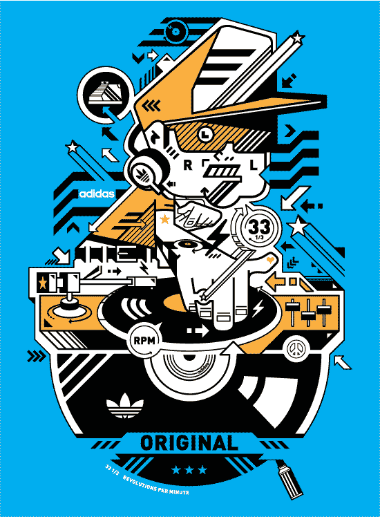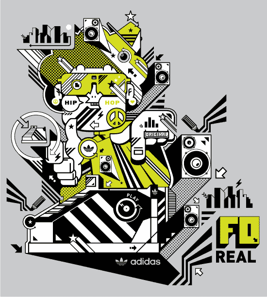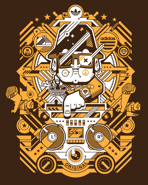 Here is the series of T-shirt graphics I designed for adidas under hip hop/old school theme.