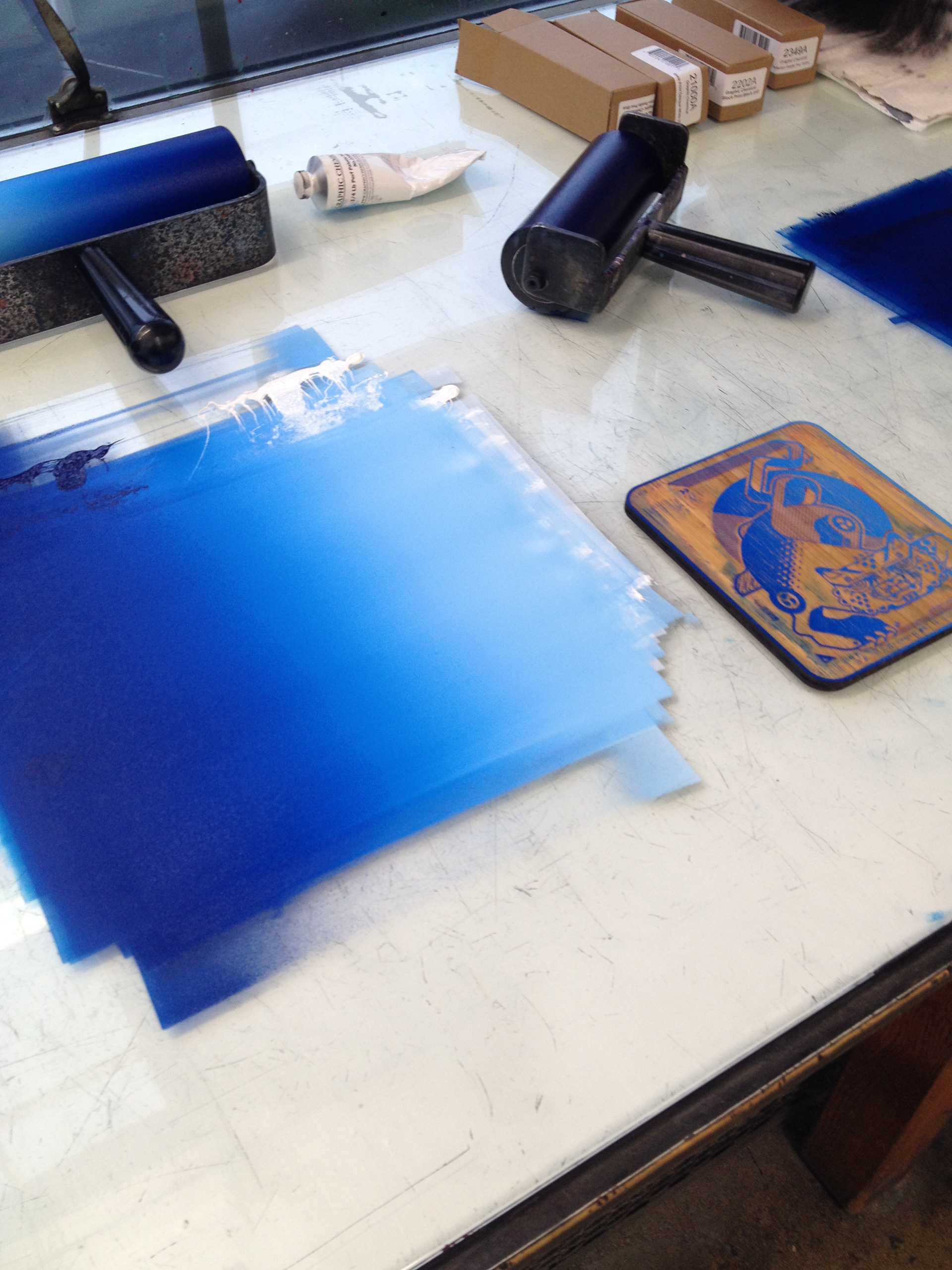 Here are some of the prints made on Okawara paper. The wood grain showing up real nice!