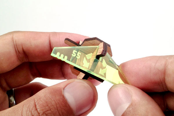 This is my original DIY bamboo toy design. It comes in 5 x 7 flat format and when you built it, it's about 3 inch tall. Material: Bamboo and Acrylic.
