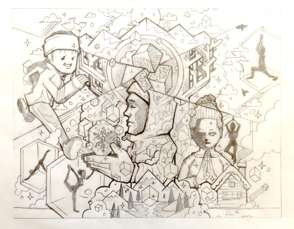 Lululemon hired me to create a holiday inspired graphic for their retail space window graphic. The illustration was printed on vinyl sheet and installed to their retail space. Scroll down below to see the initial sketch and the in-between process to experience the entire creative process.