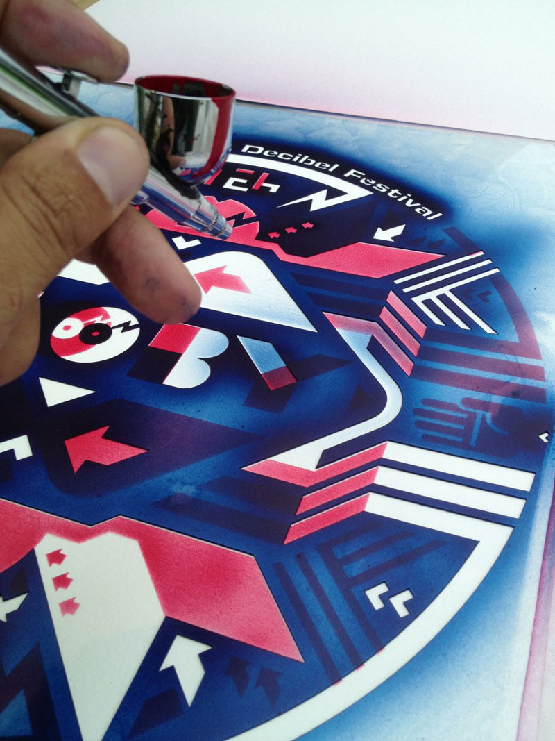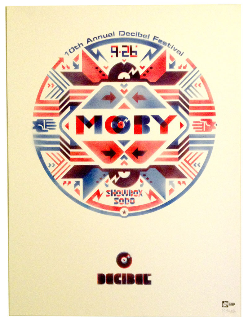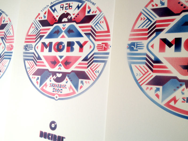I was invited to design a poster for Moby's DJ appearance at Decibel Festival. Each invited designers designed a poster for the band that is assigned by Festival Committee. All the posters are going to be exhibited in the gallery in Seattle. This is music, art and design combined festival and I wanted to honor the concept, thus I created hand stencil, hand airbrushed poster. I only created very limited 5 posters. 3 of them were submitted for the event.