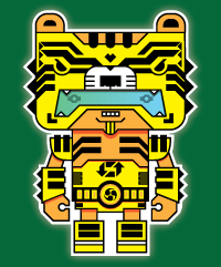 This hand made toy was inspired by a tiger. I came up with a character wearing tiger mask. I had fun with designing all kinds of stripes.