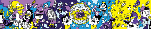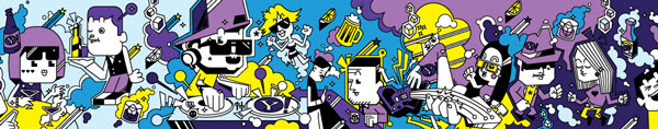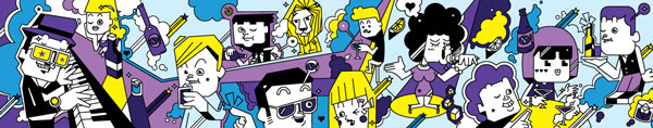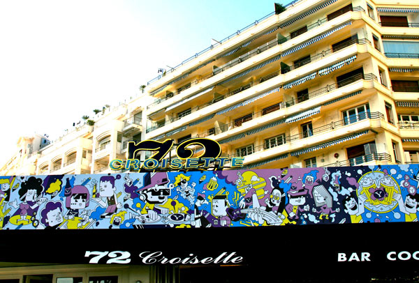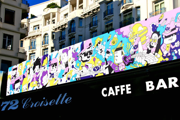 As part of Yahoo’s presence in Cannes Lions International Festival of Creativity in France this year, For the week of the festival, I have had an opportunity to put illustration on the enormous banner that runs along the top of the Gutter Bar. The Gutter Bar is a Cannes institution. Located in central Cannes, just steps from the beach.